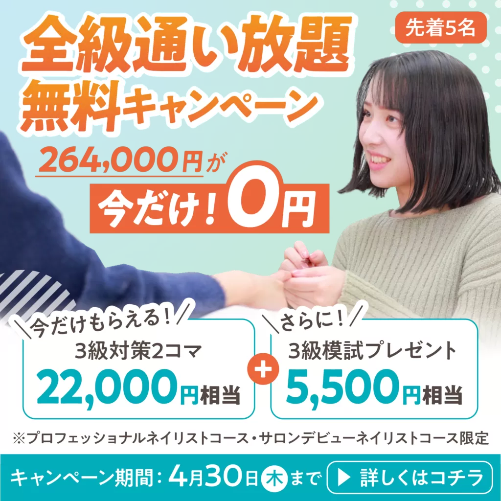 学びスタートアップキャンペーン実施中!詳細はこちら:https://www.erikonailschool.com/